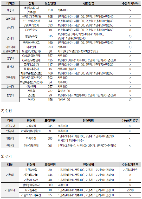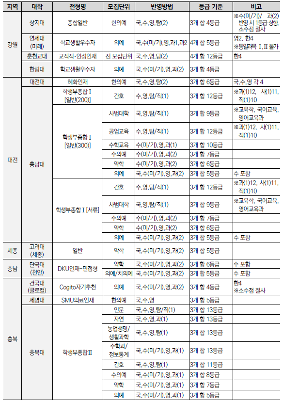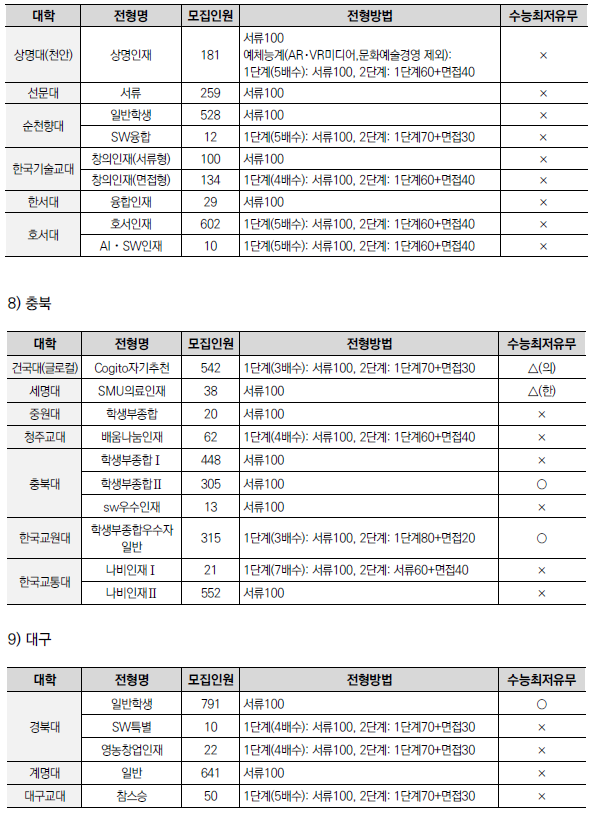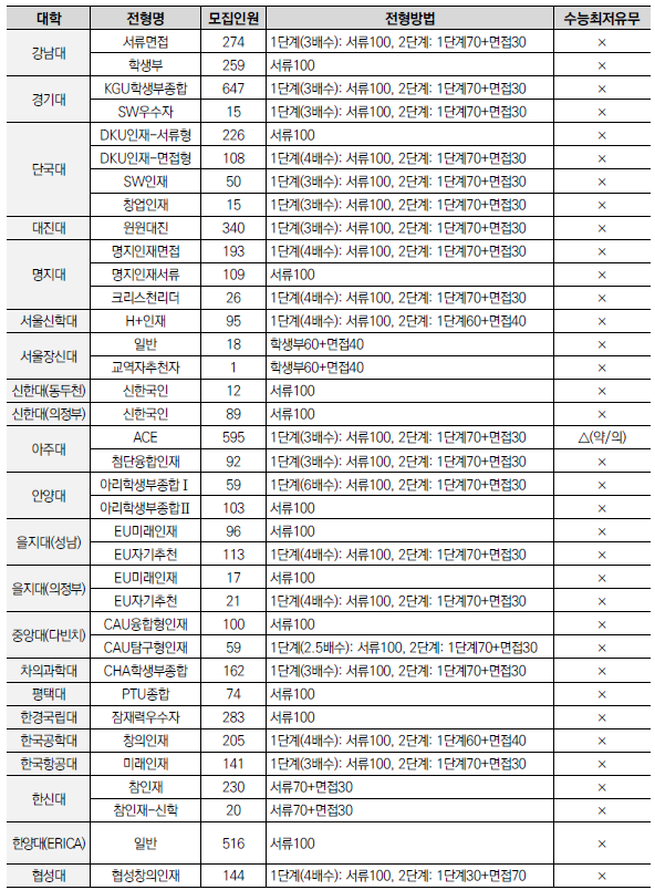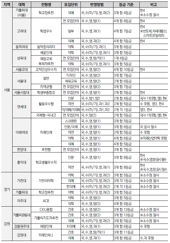 | 2025학년도 수시 모집 - 논술전형 특징(반영비율, 수능최저 등) (0) | 2024.01.24 |