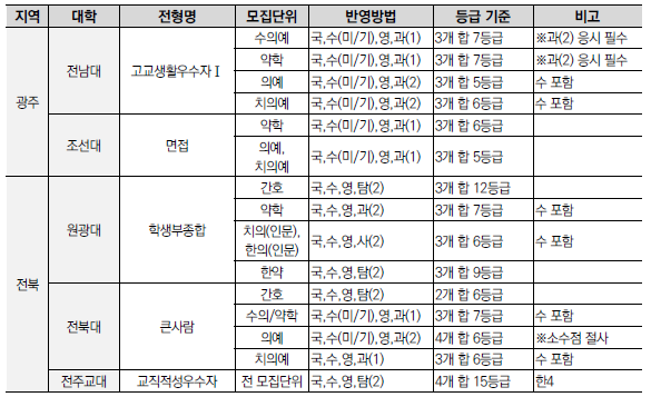 | 2025학년도 수시 모집 - 학생부교과전형 특징(반영교과,반영방법,진로선택과목,지역균형전형) (0) | 2024.01.22 |