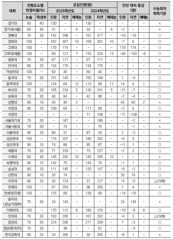 | 2025학년도 수시 모집 - 특별전형(기회균형,고른기회,사회통합,사회배려자,국가보훈,저소득층,농어촌,특성화고,기초생활,차상위,한부모,장애인) (0) | 2024.01.24 |
