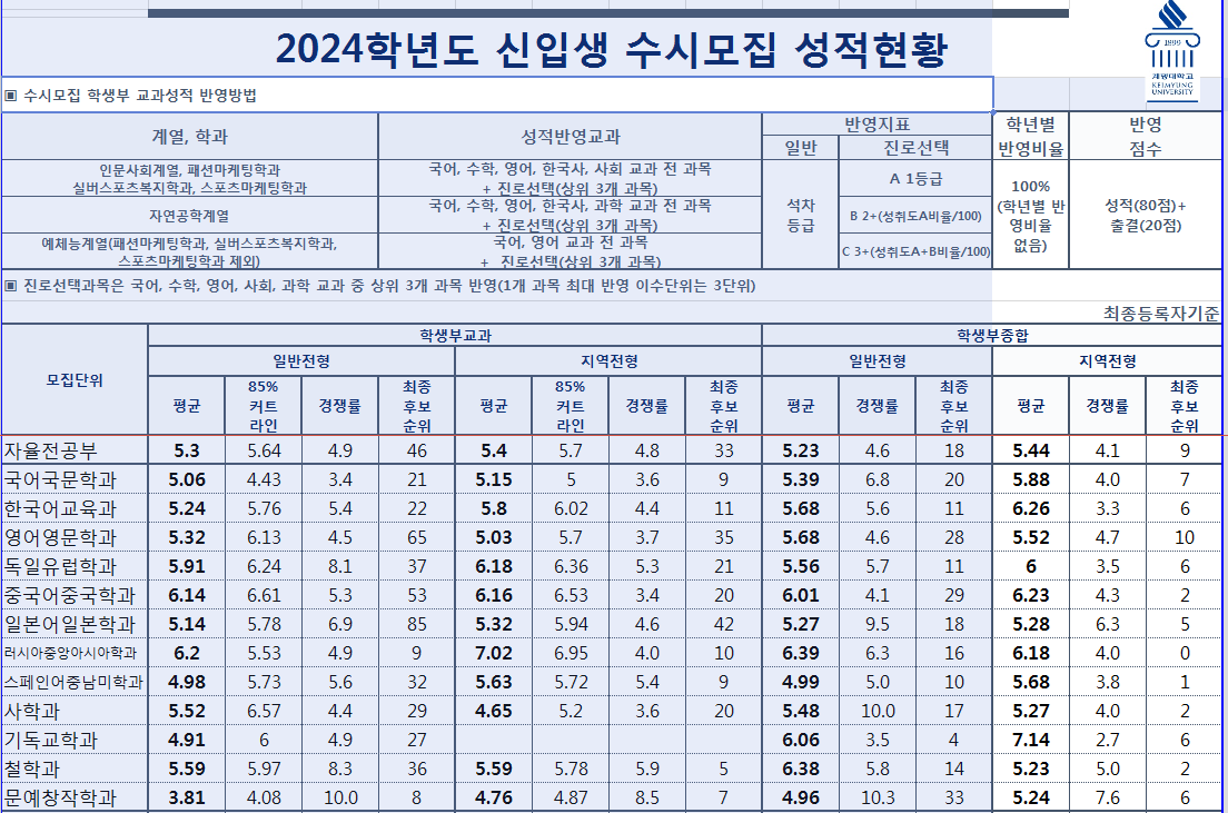 | 2024학년도 경북대 수시, 정시 입시결과(커트라인) (0) | 2024.07.24 |
