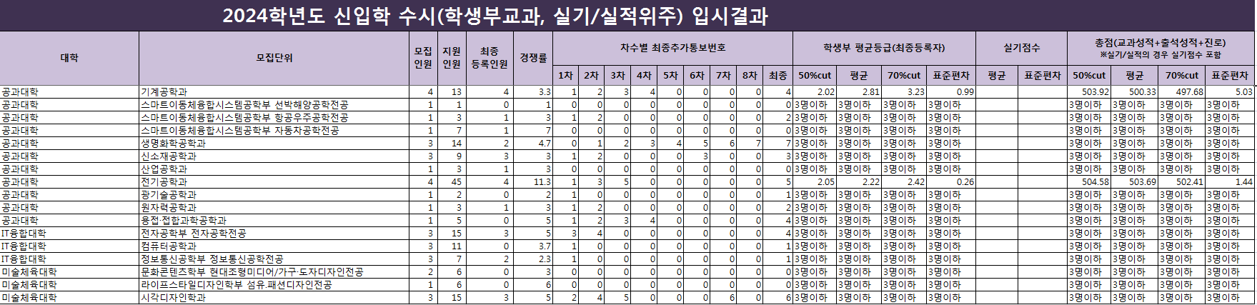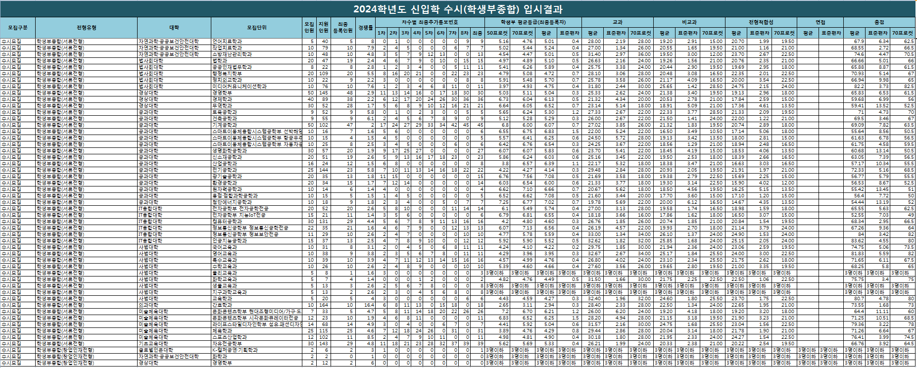 | 2024학년도 전남대, 수시, 정시 입시결과(커트라인) (0) | 2024.07.24 |