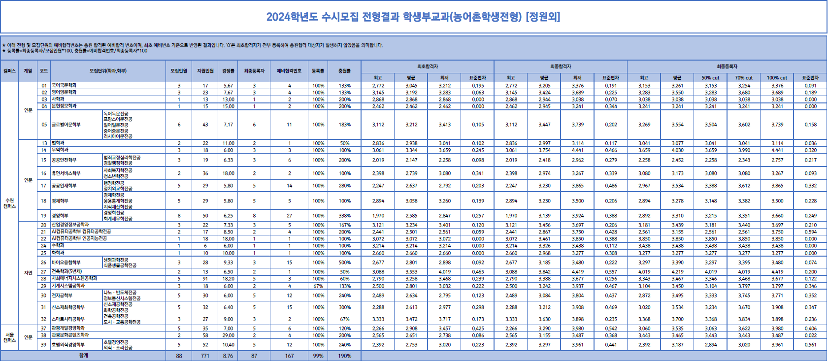 | 2024학년도 전남대, 수시, 정시 입시결과(커트라인) (0) | 2024.07.24 |