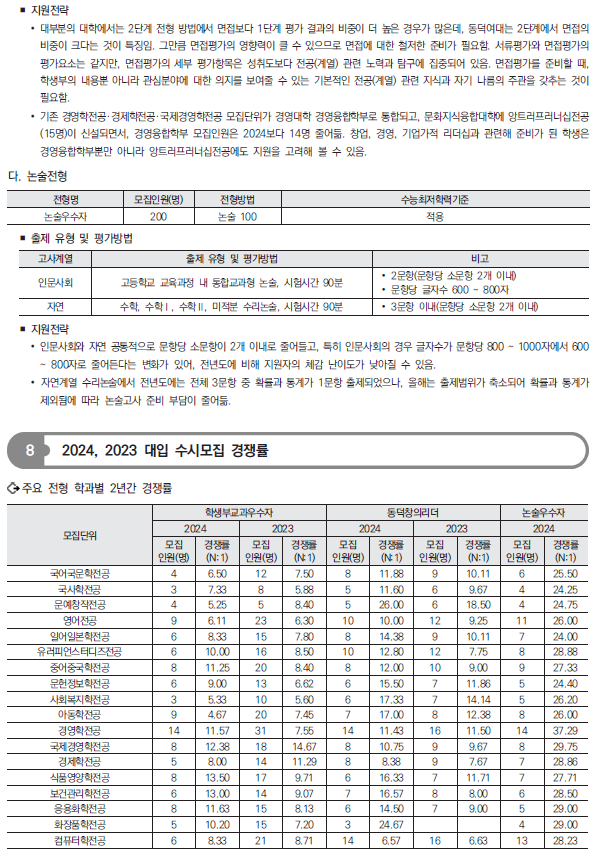 2025학년도 경희대, 고려대, 광운대 수시 모집요강 및 전년도 입시결과(커트라인)-모집일정, 인원, 반영방법, 수능최저 등