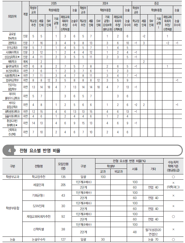 2025학년도 상명대, 서강대, 서울과학기술대 수시 모집요강 및 전년도 입시결과(커트라인)-모집일정, 인원, 반영방법, 수능최저 등