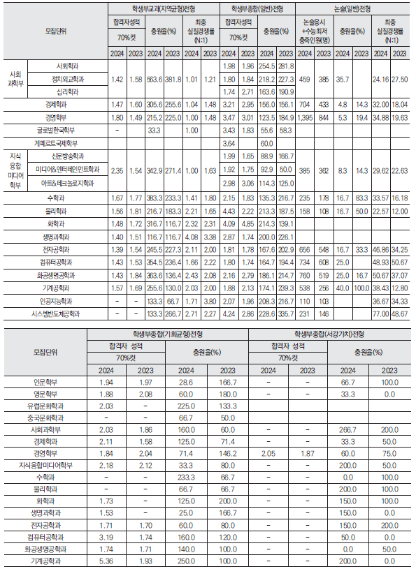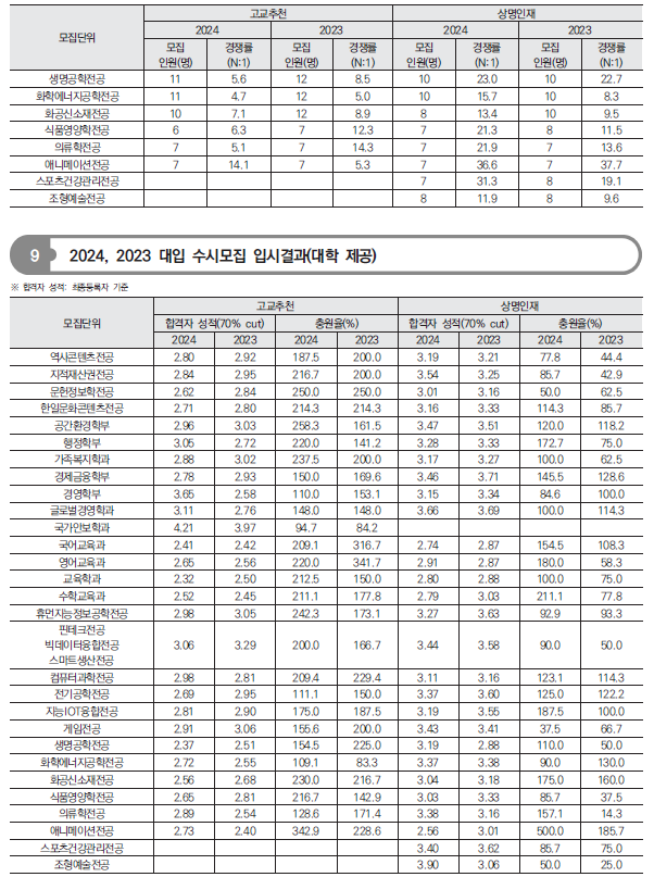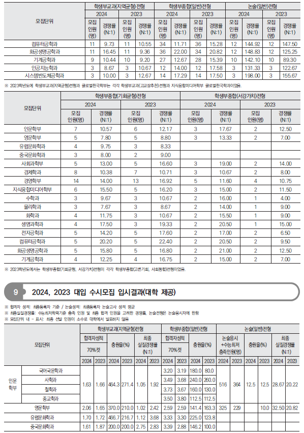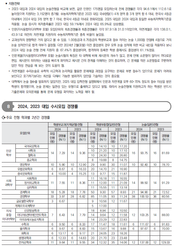 2025학년도 경희대, 고려대, 광운대 수시 모집요강 및 전년도 입시결과(커트라인)-모집일정, 인원, 반영방법, 수능최저 등