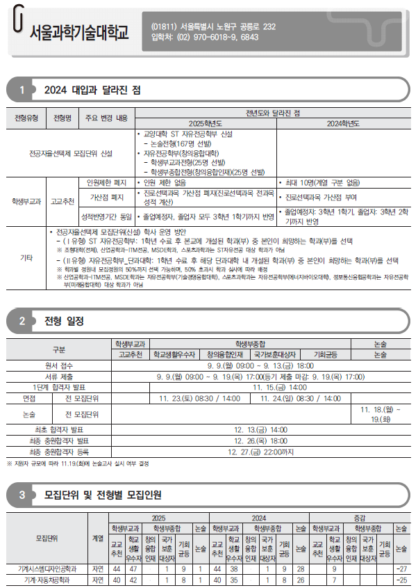 2025학년도 상명대, 서강대, 서울과학기술대 수시 모집요강 및 전년도 입시결과(커트라인)-모집일정, 인원, 반영방법, 수능최저 등