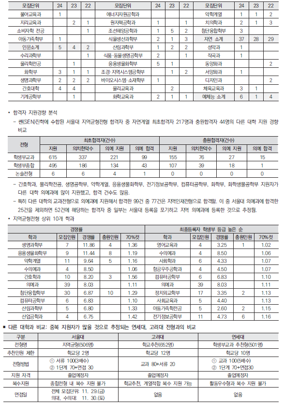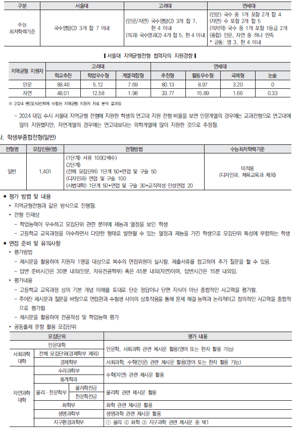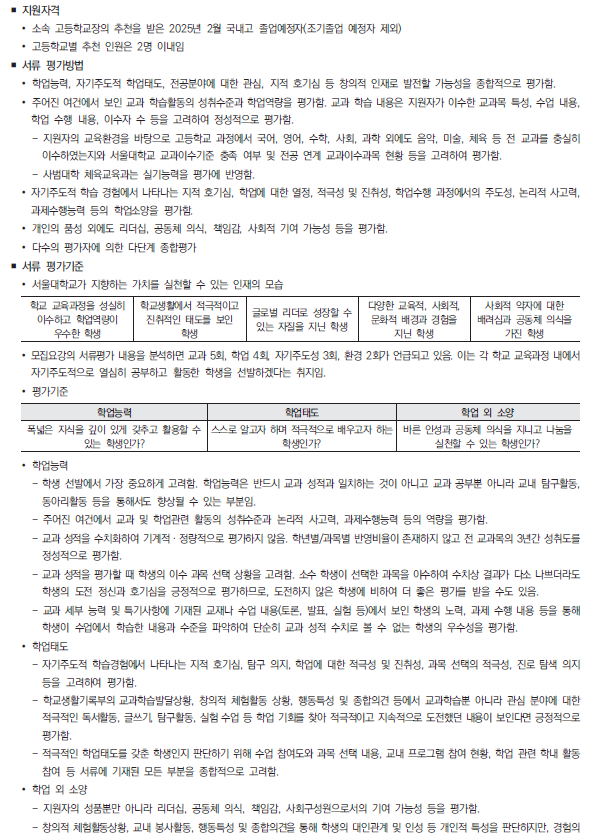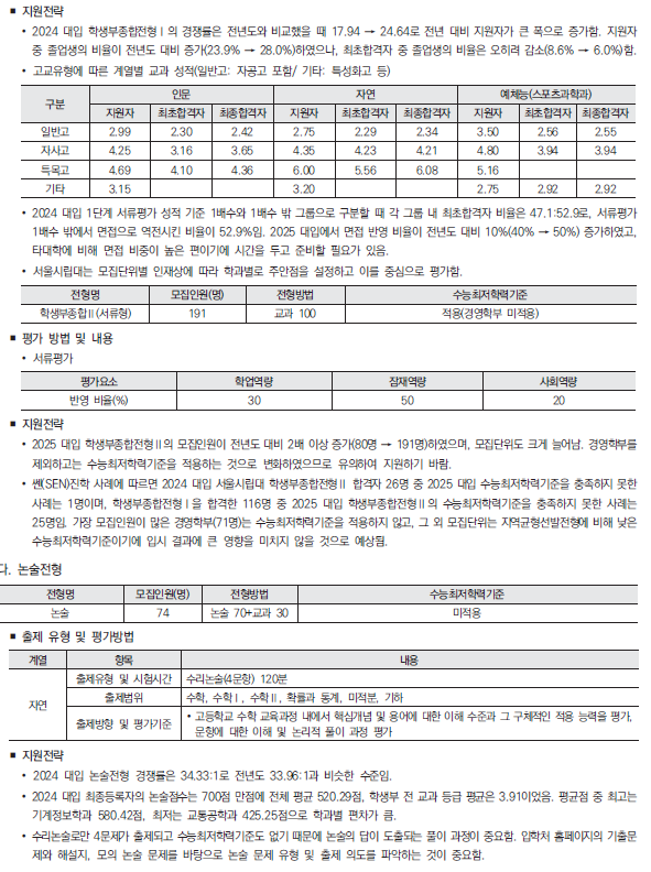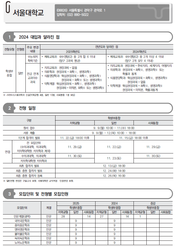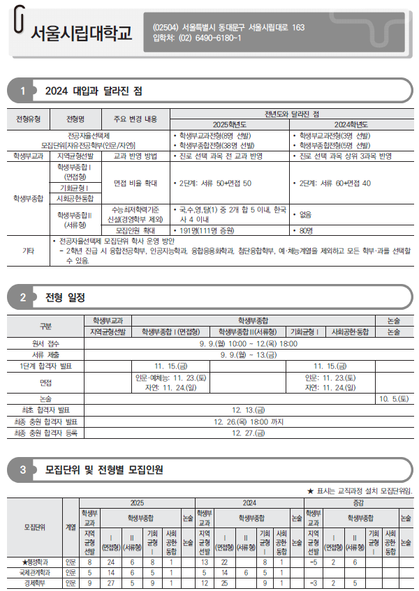 2025학년도 서울대, 서울시립대 수시 모집요강 및 전년도 입시결과(커트라인)-모집일정, 인원, 반영방법, 수능최저 등