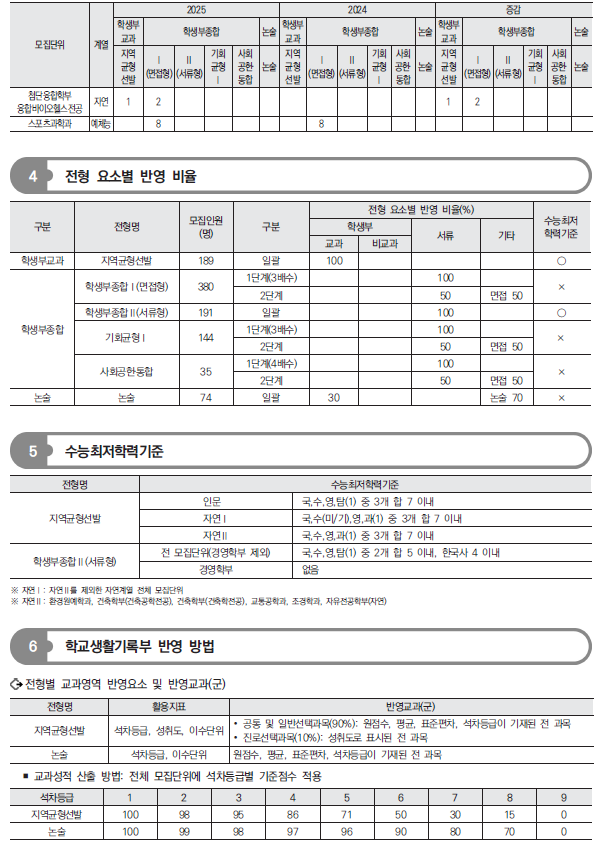 2025학년도 세종대, 숙명여대, 숭실대 수시 모집요강 및 전년도 입시결과(커트라인)-모집일정, 인원, 반영방법, 수능최저 등