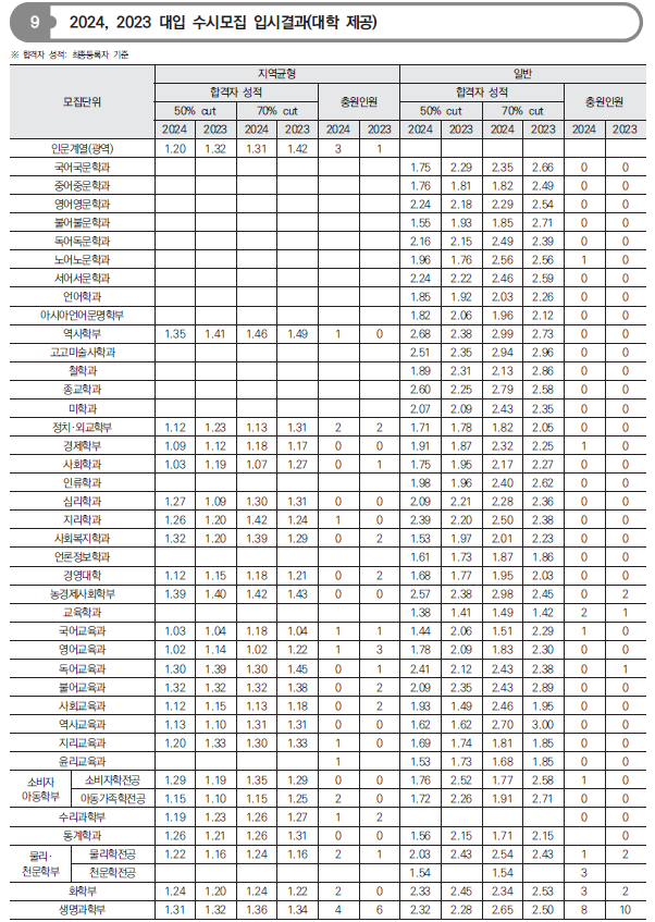 수시 정시 입시결과