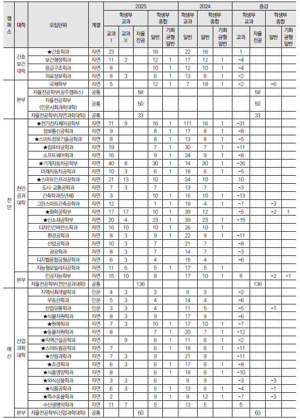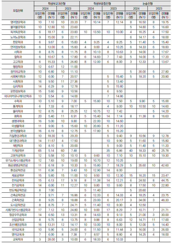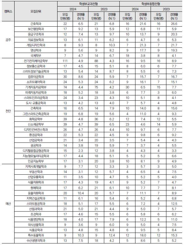 2025학년도 충남대, 충북대, 한국교원대 수시 모집요강 및 전년도 입시결과(커트라인)-모집일정, 인원, 반영방법, 수능최저 등