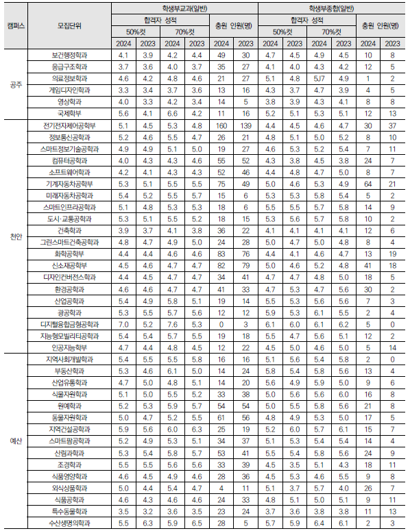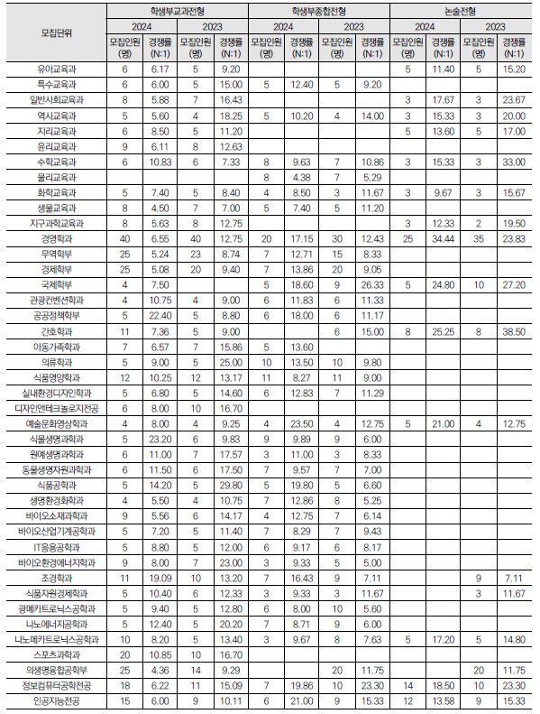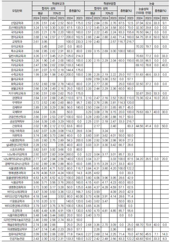2025학년도 전남대, 전북대, 제주대 수시 모집요강 및 전년도 입시결과(커트라인)-모집일정, 인원, 반영방법, 수능최저 등