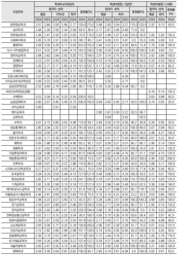 2025학년도 한국교통대, 단국대, 단국대(천안), 남서울대 수시 모집요강 및 전년도 입시결과(커트라인)-모집일정, 인원, 반영방법, 수능최저 등