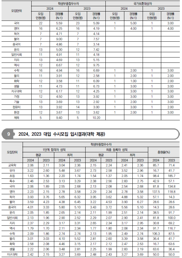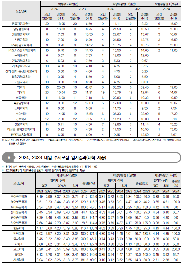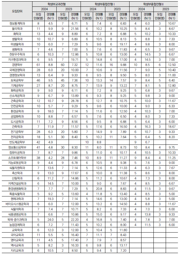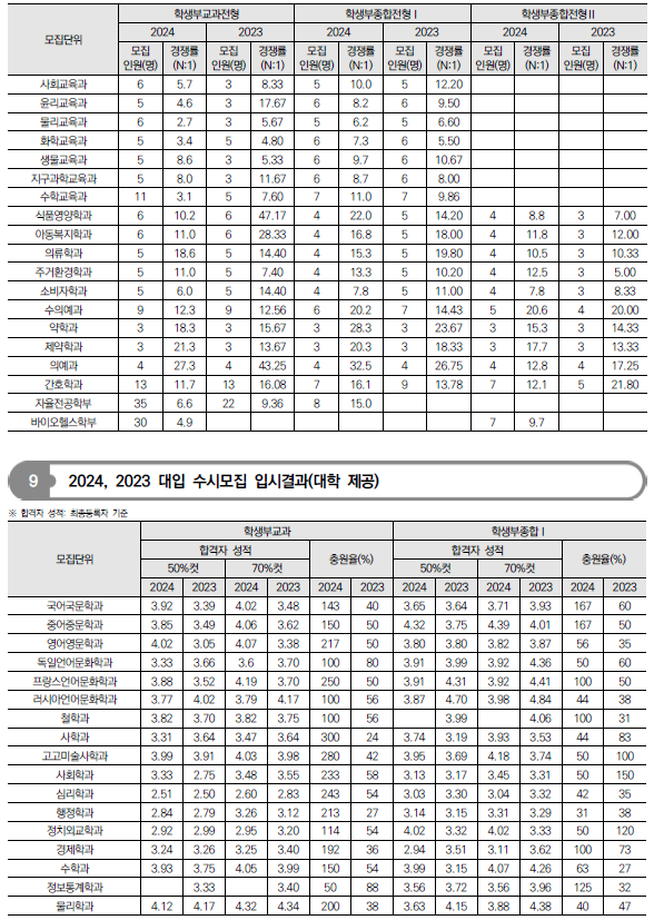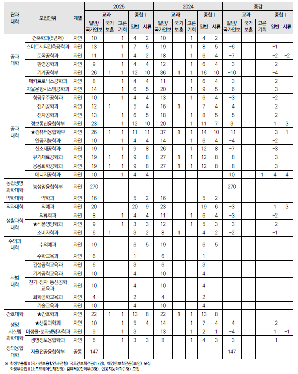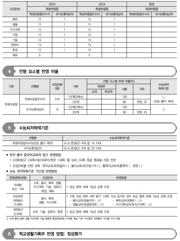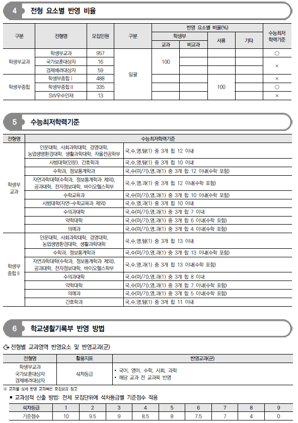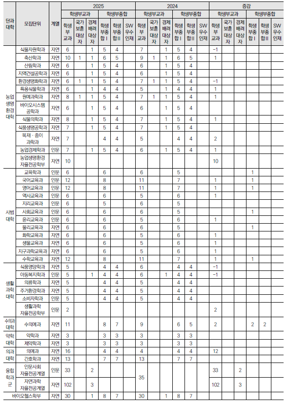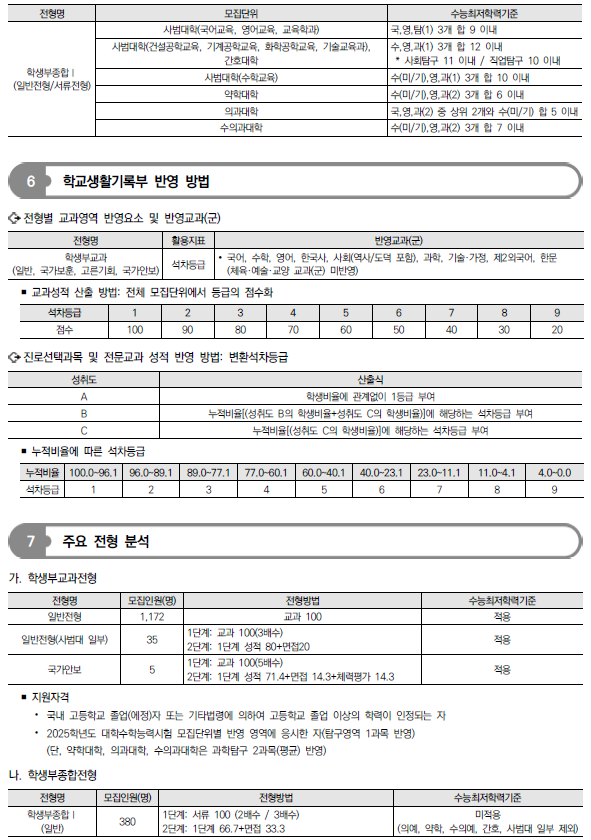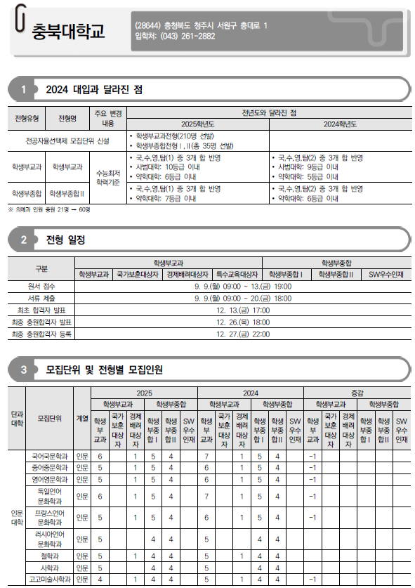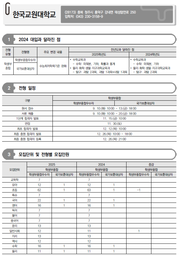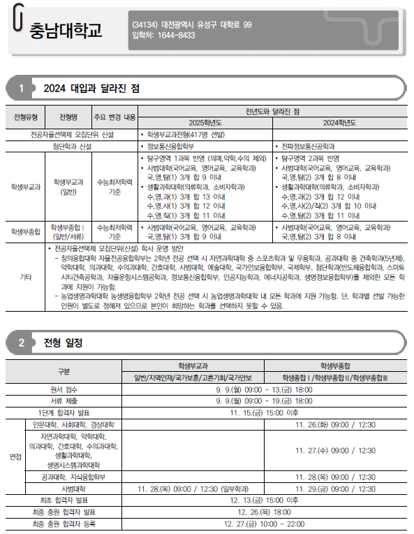 2025학년도 충남대, 충북대, 한국교원대 수시 모집요강 및 전년도 입시결과(커트라인)-모집일정, 인원, 반영방법, 수능최저 등