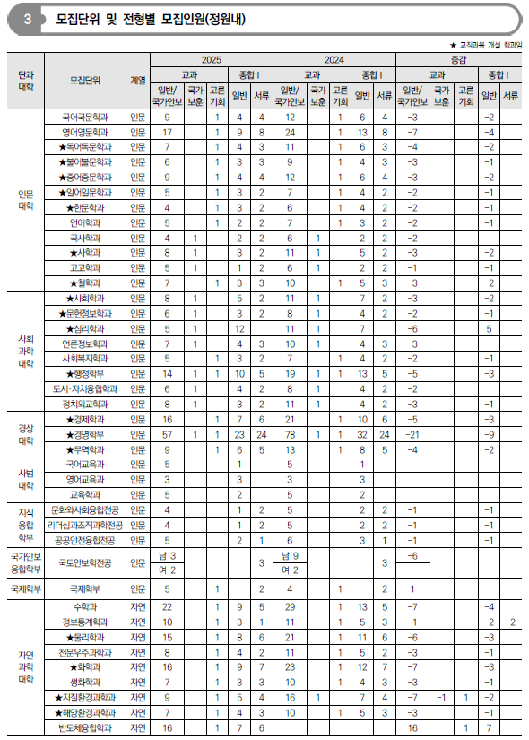 2025학년도 전남대, 전북대, 제주대 수시 모집요강 및 전년도 입시결과(커트라인)-모집일정, 인원, 반영방법, 수능최저 등