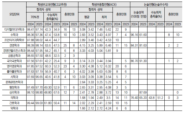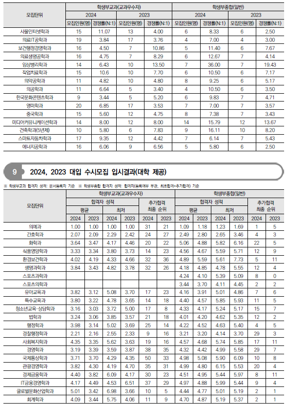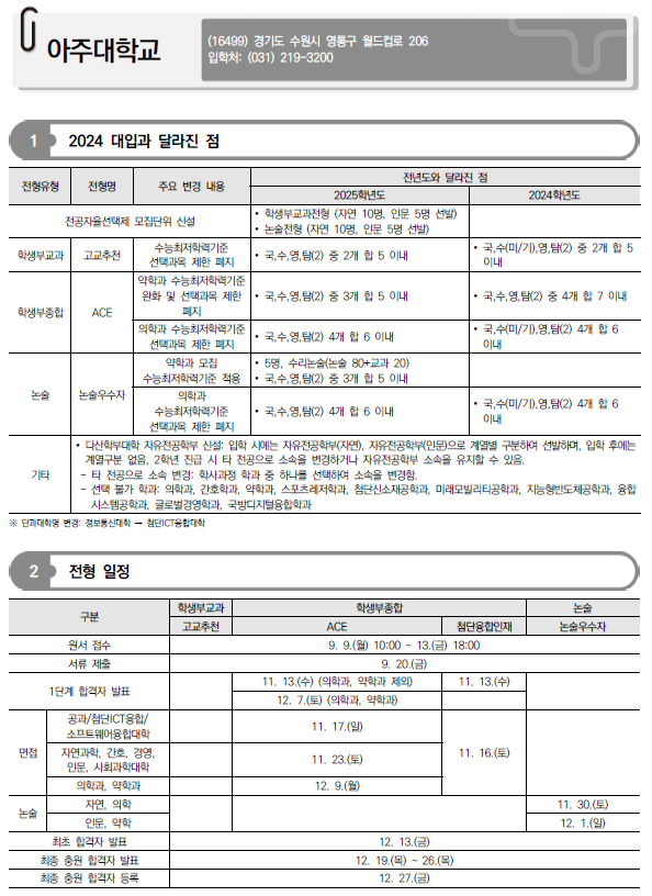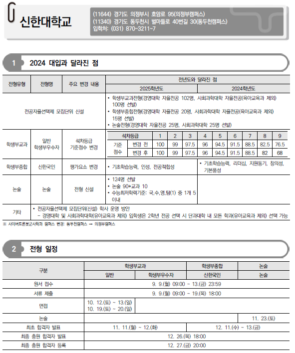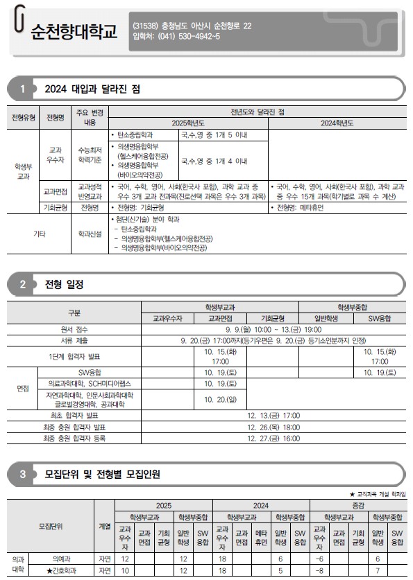 2025학년도 순천향대, 아주대, 신한대 수시 모집요강 및 전년도 입시결과(커트라인)-모집일정, 인원, 반영방법, 수능최저 등