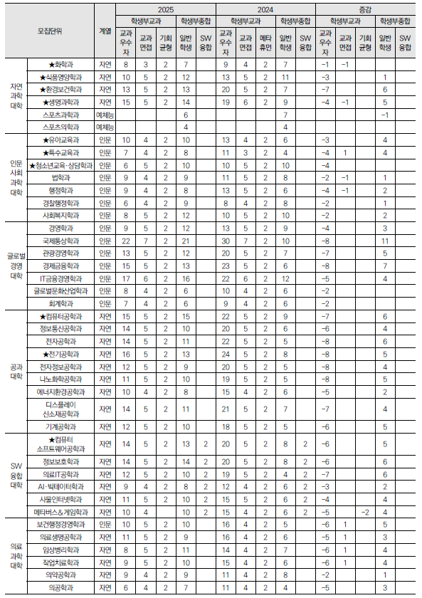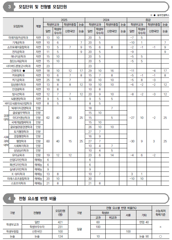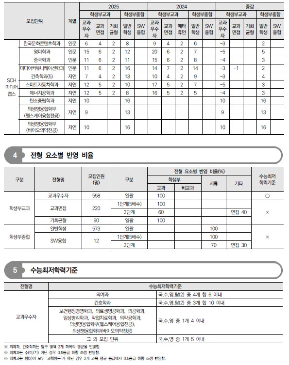 2025학년도 한국교통대, 단국대, 단국대(천안), 남서울대 수시 모집요강 및 전년도 입시결과(커트라인)-모집일정, 인원, 반영방법, 수능최저 등