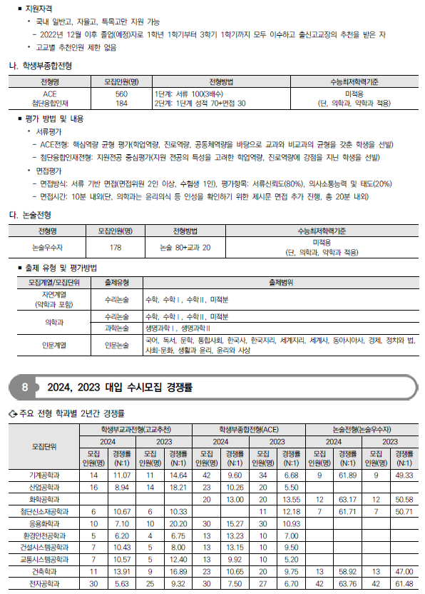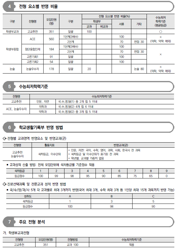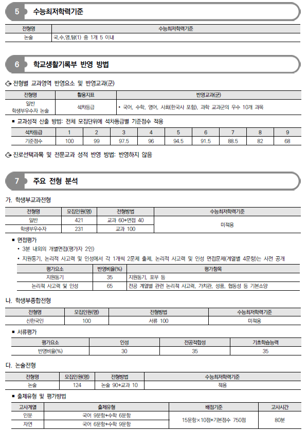 2025학년도 연세대(미래), 용인대 수시 모집요강 및 전년도 입시결과(커트라인)-모집일정, 인원, 반영방법, 수능최저 등