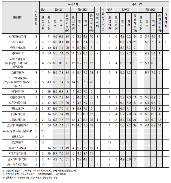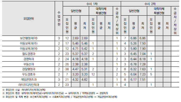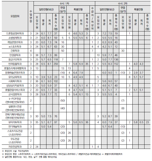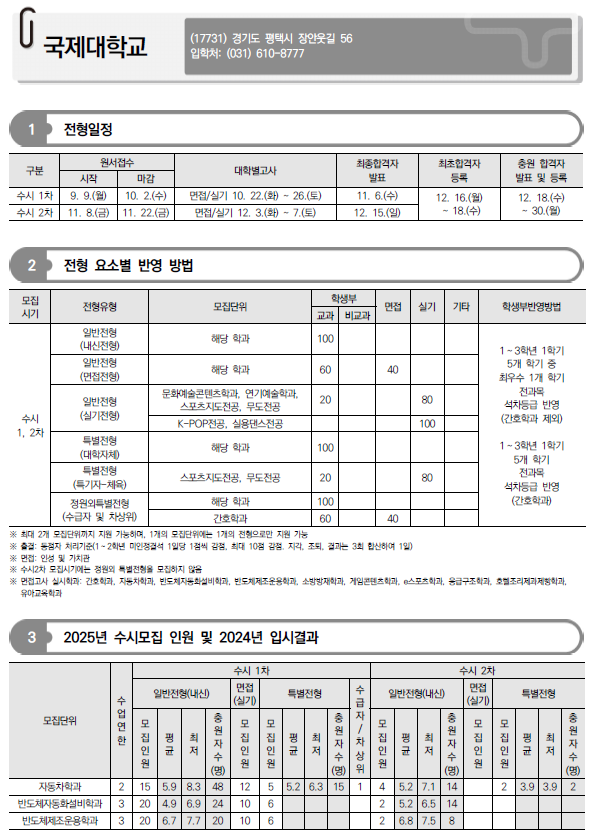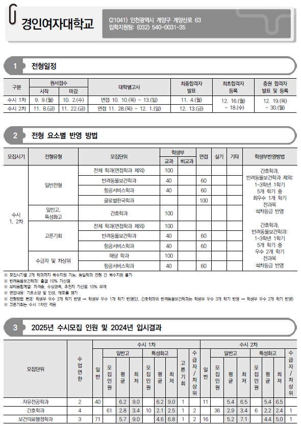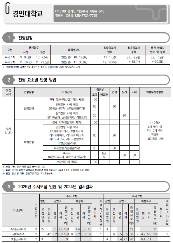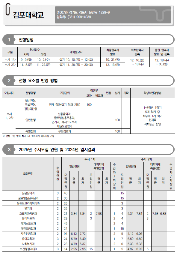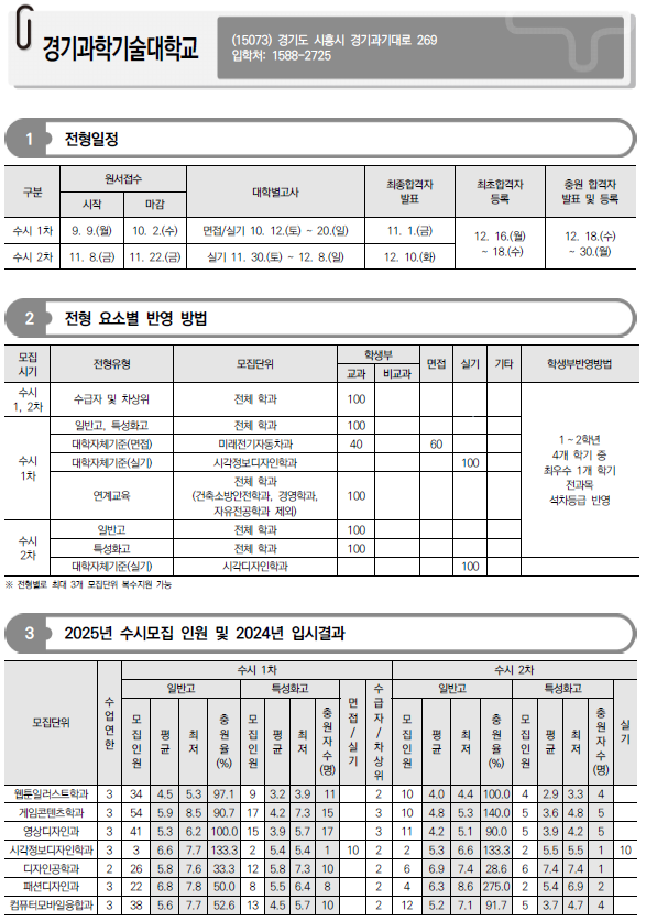 2025학년도 경기과학기술대, 경민대, 경복대, 경인여대, 계원예대, 국제대, 김포대 수시 모집요강 및 전년도 입시결과(커트라인)-모집일정, 인원, 반영방법 등