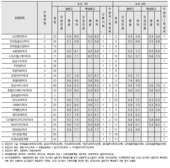 2025학년도 대림대, 동남보건대, 동서울대, 동아방송예술대, 동양미래대, 동원대, 두원공과대 수시 모집요강 및 전년도 입시결과(커트라인)-모집일정, 인원, 반영방법 등