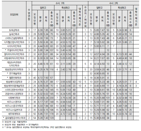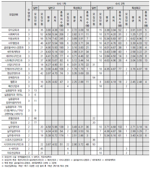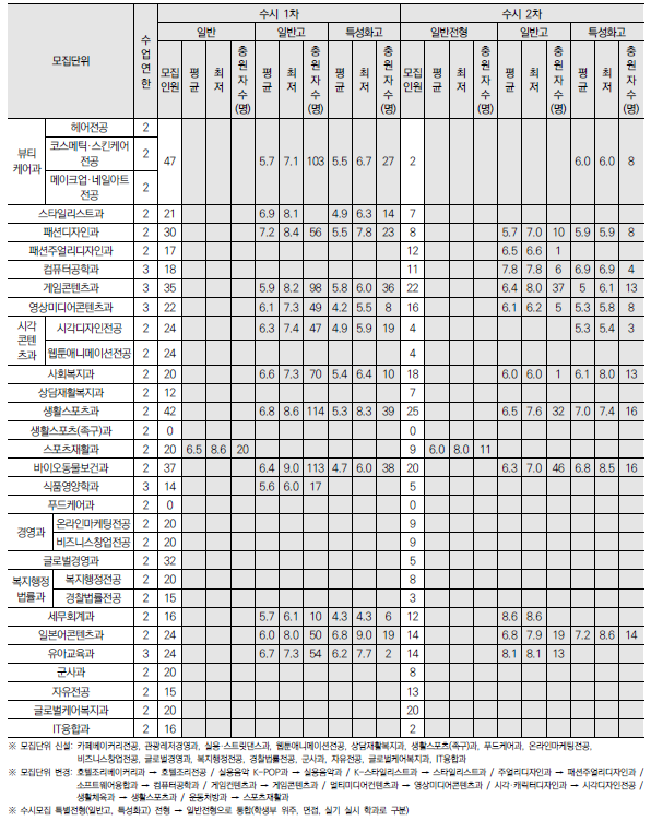 2025학년도 서울예대, 서일대, 서정대, 수원과학대, 수원여대, 숭의여대, 신구대, 신안산대 수시 모집요강 및 전년도 입시결과(커트라인)-모집일정, 인원, 반영방법 등