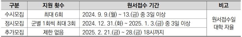 5. 수시·정시·추가모집에 지원 가능한 횟수는 몇 회인가요?