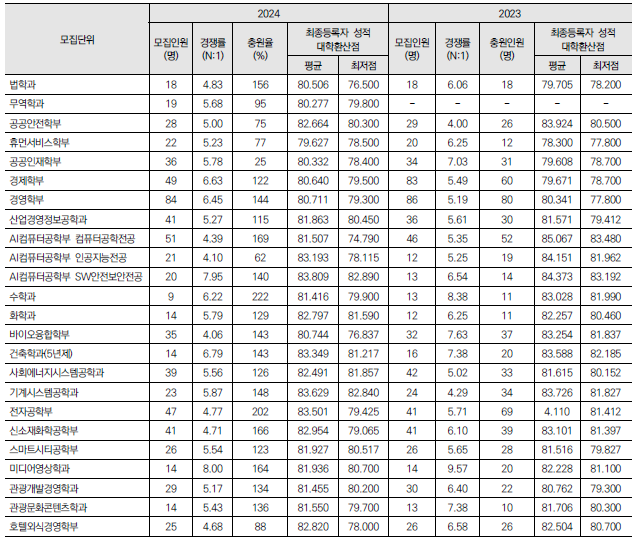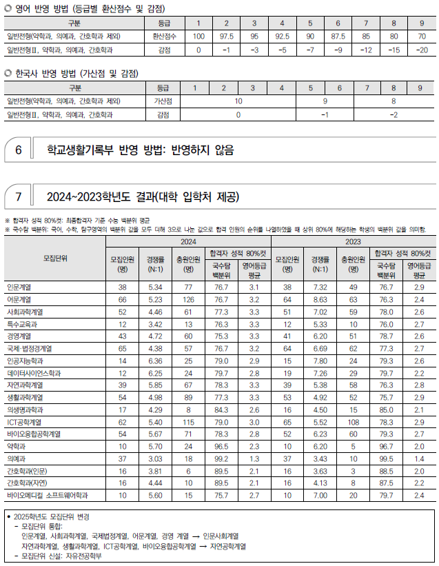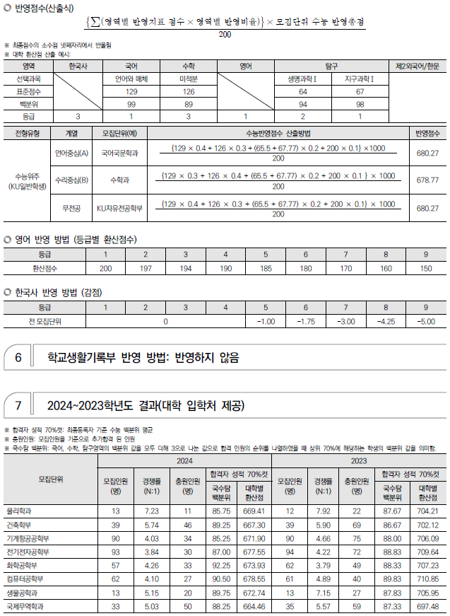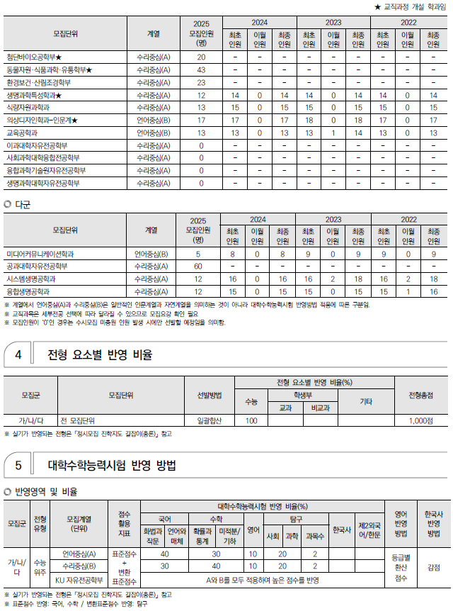 2025학년도 경희대, 고려대, 광운대 정시 모집 요강(반영방법 등) 및 전년도 입시결과(커트라인)