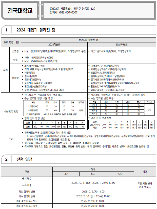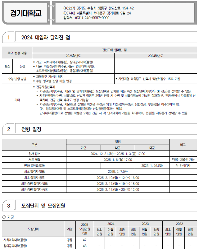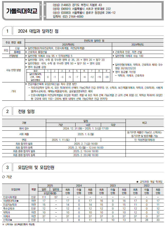 2025학년도 가톨릭대, 건국대, 경기대 정시 모집 요강(반영방법 등) 및 전년도 입시결과(커트라인)