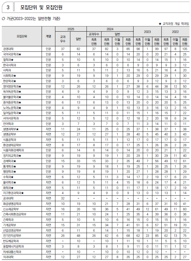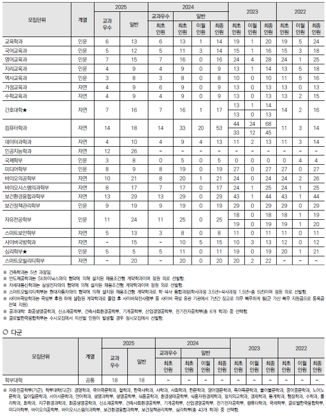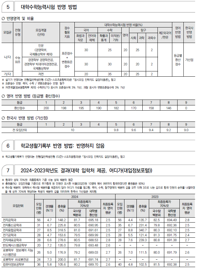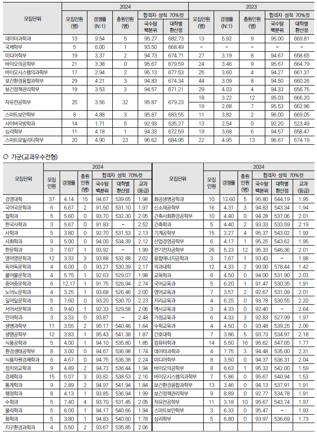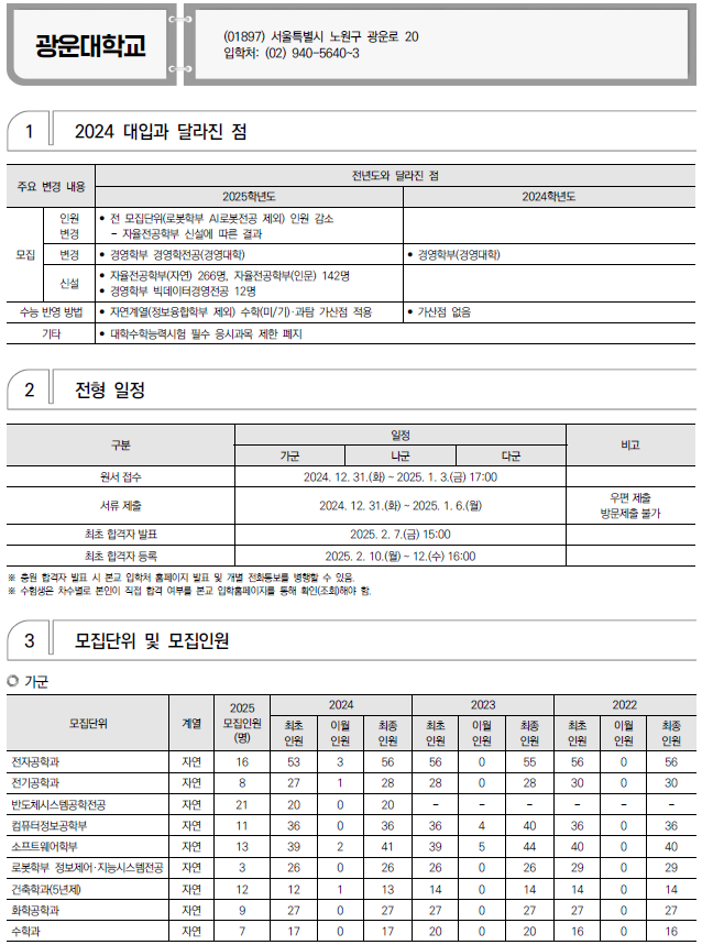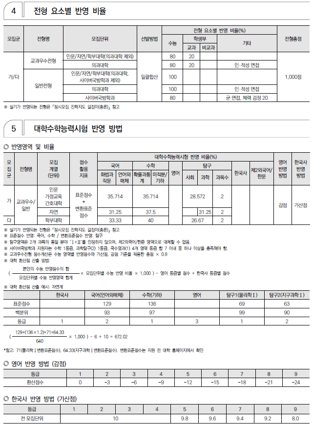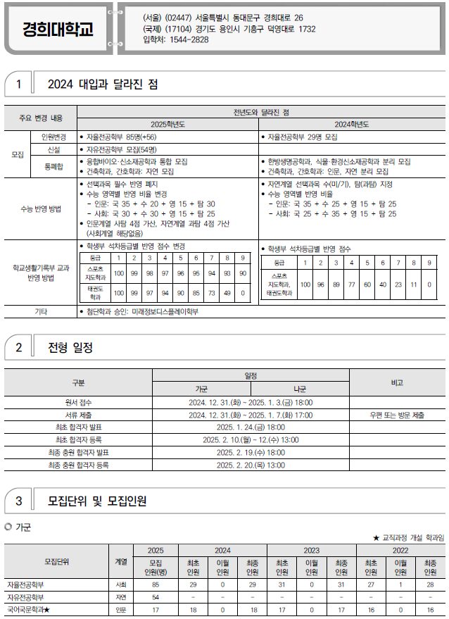 2025학년도 경희대, 고려대, 광운대 정시 모집 요강(반영방법 등) 및 전년도 입시결과(커트라인)