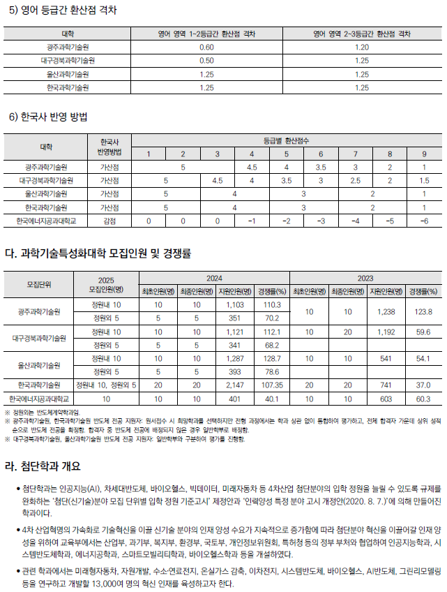 | 2025학년도 사회통합전형(기회균형) 및 특별전형 정시 (국가보훈대상자, 장애인 등 대상자, 기초생활수급자·차상위계층·한부모가족지원대상자 등 사회 배려자) (0) | 2024.12.08 |