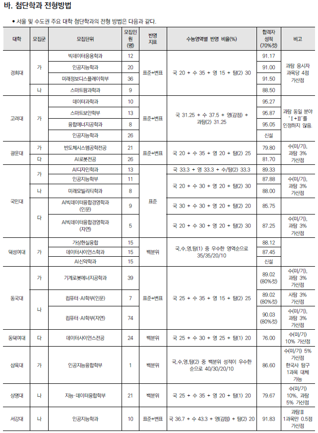| 2025학년도 의약학계열(의대, 치대, 한의대, 약대, 수의대) 정시 모집 요강-가나다군, 반영방법, 반영비율 (0) | 2024.12.05 |
