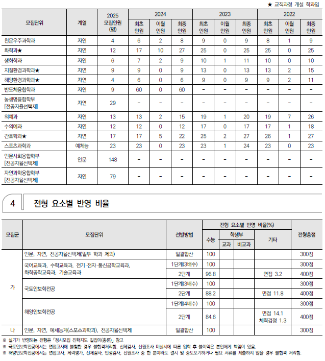 | 2025학년도 전남대, 전북대 정시 모집 요강(반영방법 등) 및 전년도 입시결과(커트라인) (0) | 2024.12.08 |