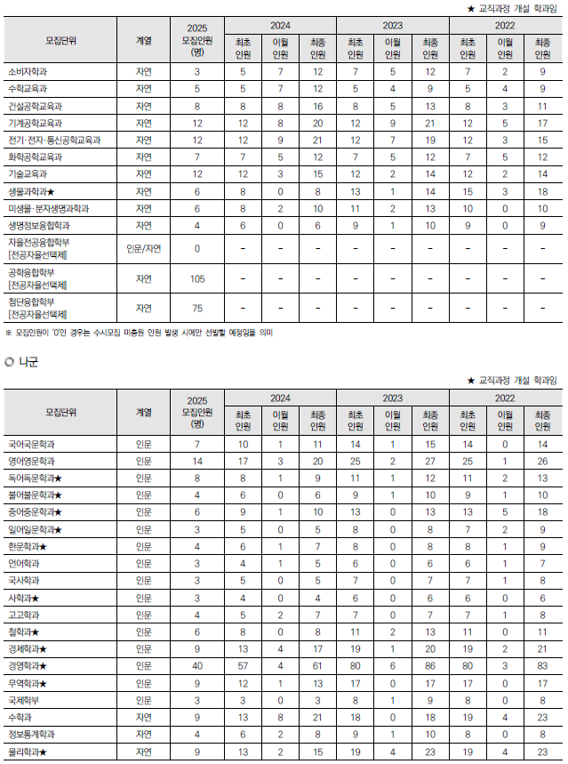 | 2025학년도 부산대, 한국교원대 정시 모집 요강(반영방법 등) 및 전년도 입시결과(커트라인) (0) | 2024.12.07 |