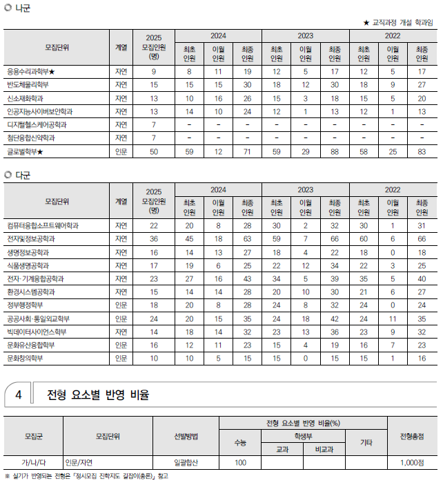 | 2025학년도 충남대, 충북대 정시 모집 요강(반영방법 등) 및 전년도 입시결과(커트라인) (0) | 2024.12.08 |