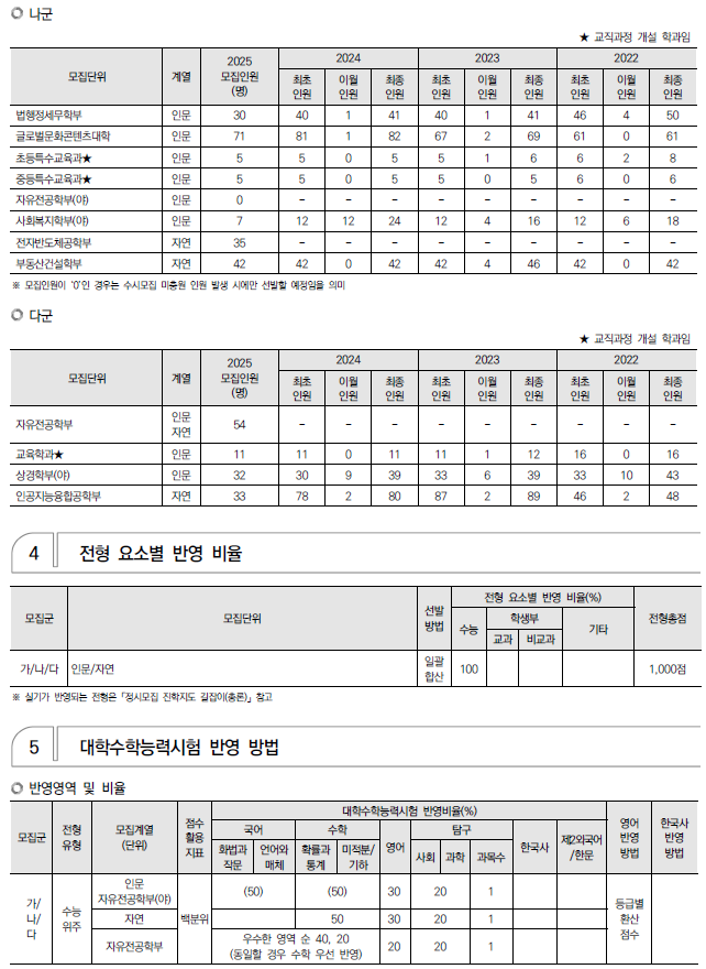 | 2025학년도 대진대, 동양대, 백석대 정시 모집 요강(반영방법 등) 및 전년도 입시결과(커트라인) (0) | 2024.12.10 |