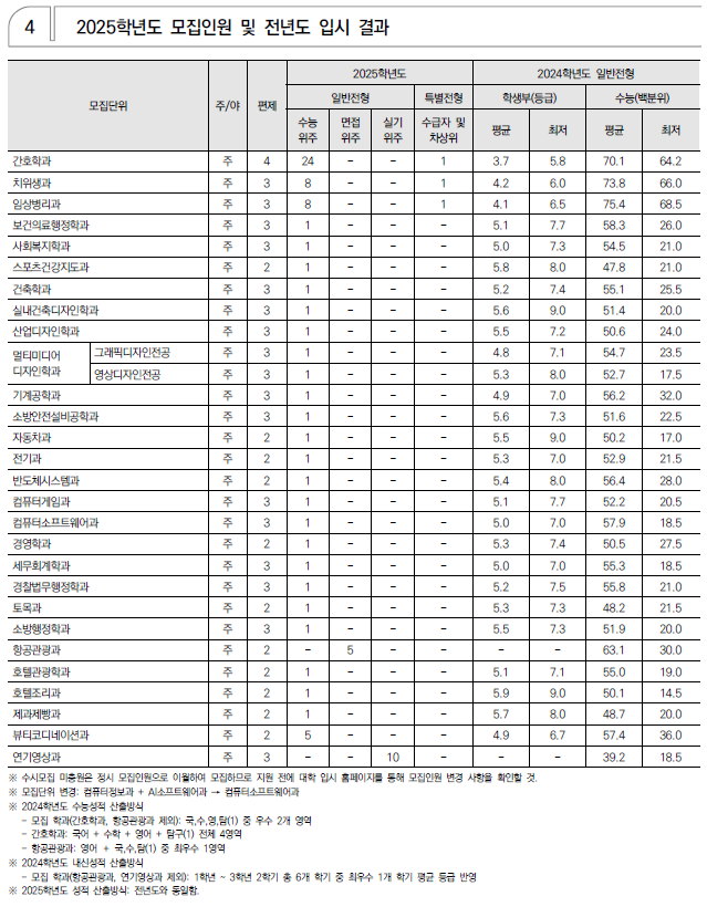 2025학년도 경기과학기술대, 경민대, 경복대, 경인여대, 계원예술대 정시 모집 요강(반영방법 등) 및 전년도 입시결과(커트라인)