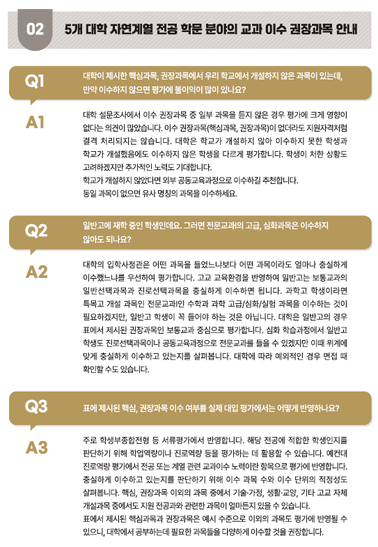| 서울대학교 전공 연계 교과이수 과목 안내 - 고등학교 진로선택과목 핵심 권장과목 안내 (0) | 2025.02.18 |