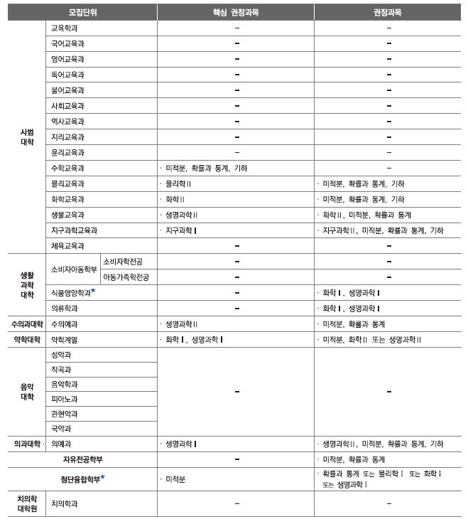 | 고등학교 선택과목 - 대학 자연계열 교과 이수 핵심과목, 권장과목 안내 (0) | 2025.02.18 |