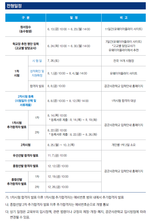 | 2026학년도 해군사관학교(해사) 모집요강 및 선행학습영향평가(1차시험,2차시험) (0) | 2025.03.24 |