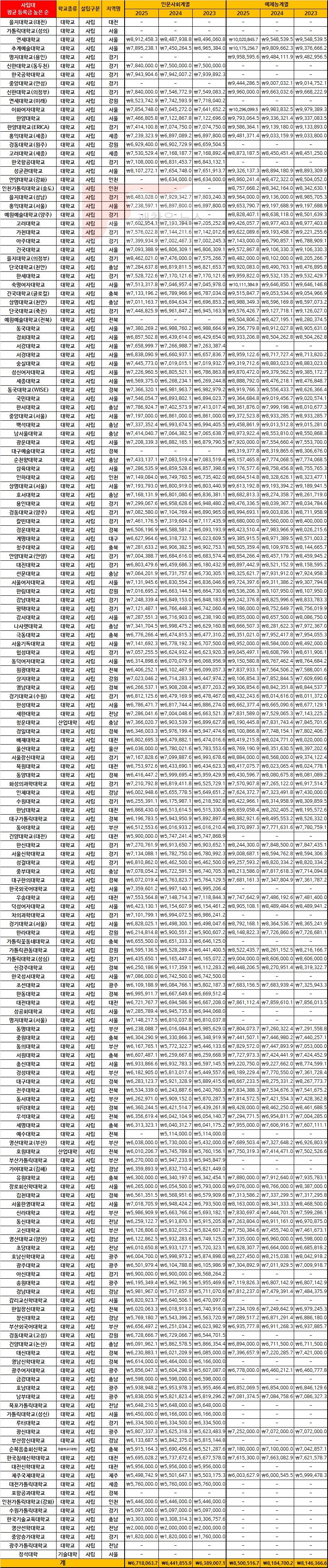 ▶ 사립대학 인문사회계열, 예체능계열 등록금