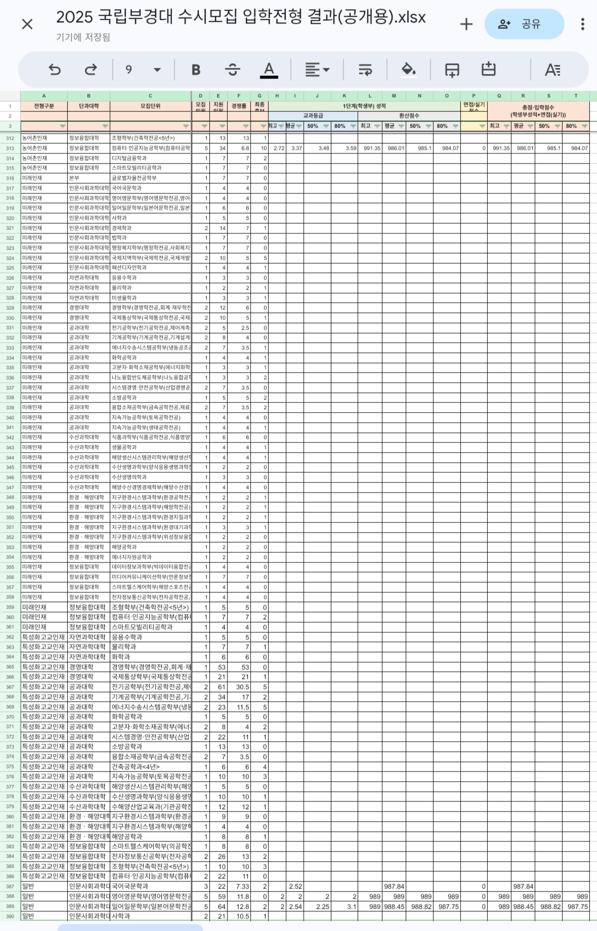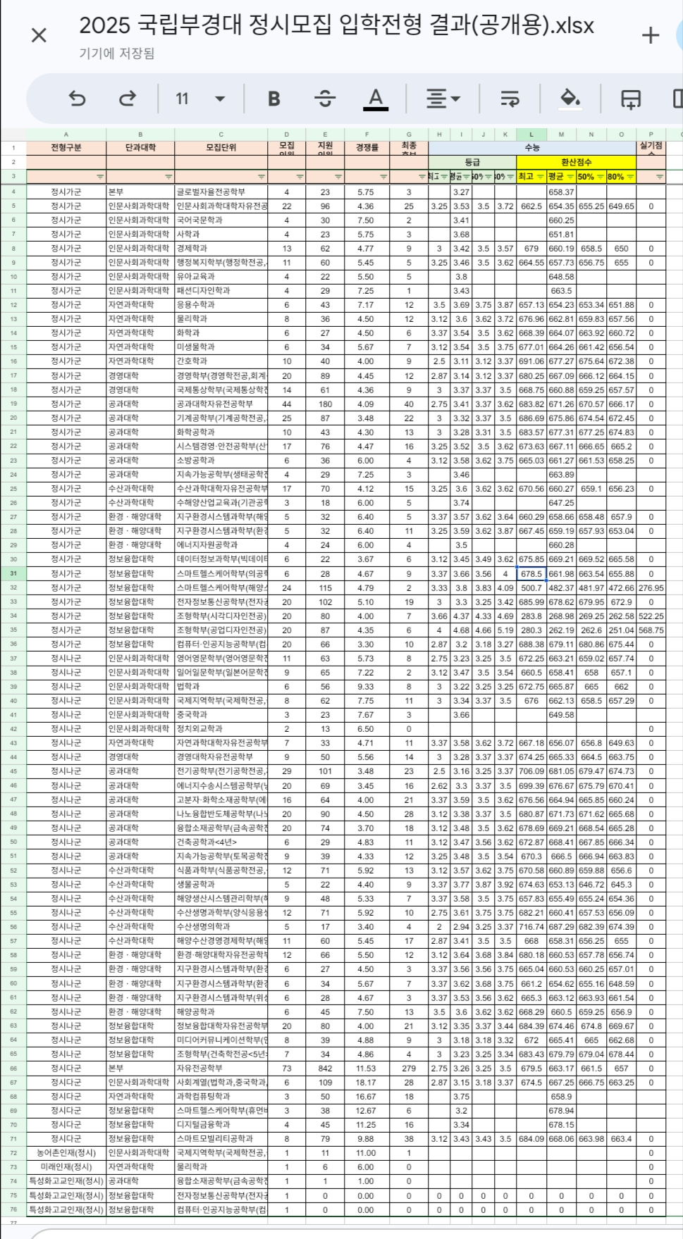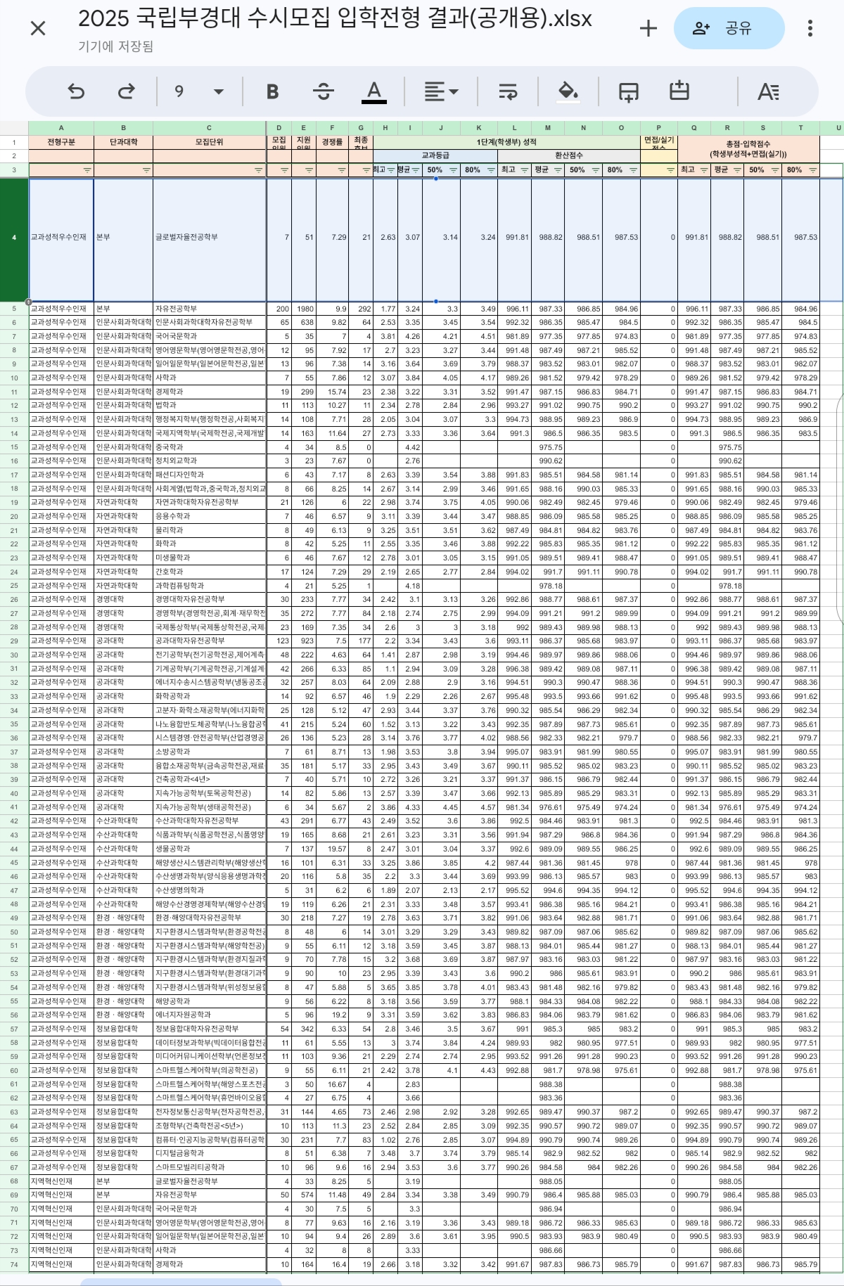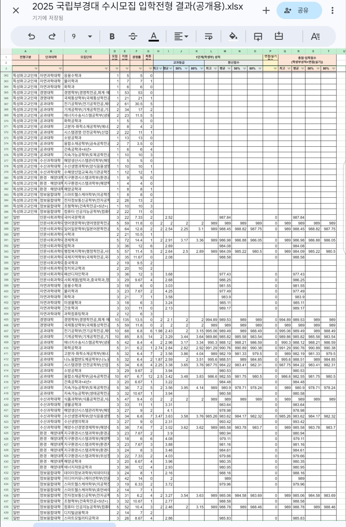 - 등급 : 합격자의 반영 과목별 평균등급(단, 탐구과목은 2개과목 평균 등급으로 계산)