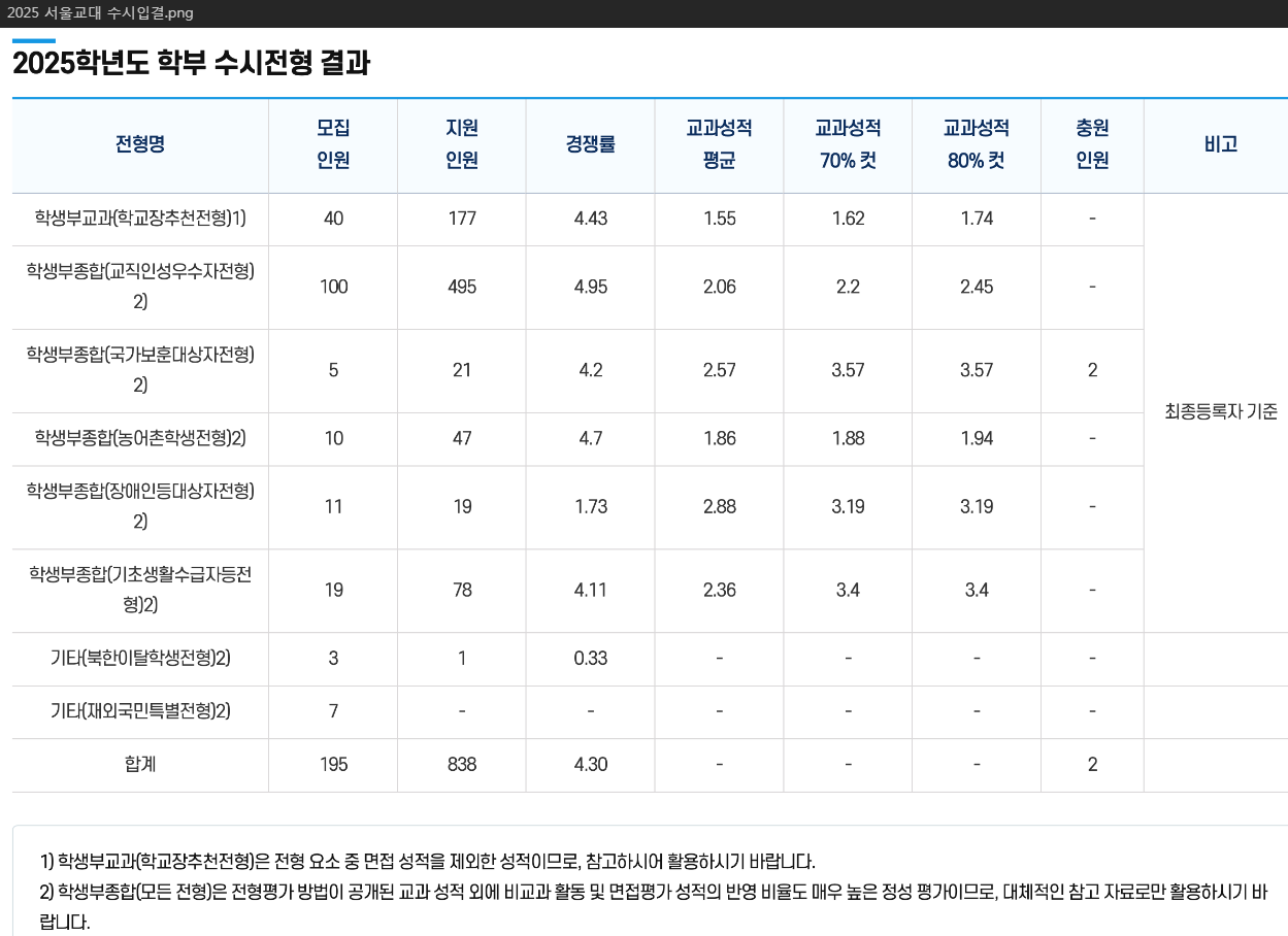 | 2025 서울과학기술대 수시 및 정시 입시결과(커트라인) (0) | 2025.08.17 |
