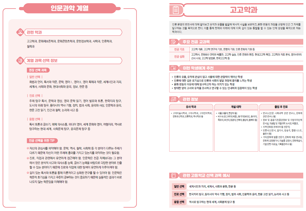 2022개정 고등학교 선택과목 인문계열- 국어국문,영어영문,동양어,서양어, 통번역,고고학,문화재보존,문화콘텐츠, 문헌정보,사학,인류,철학