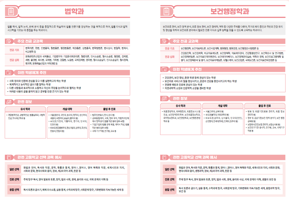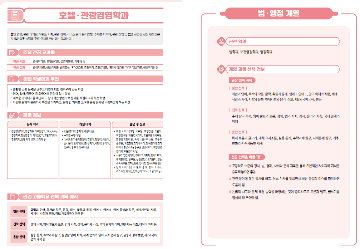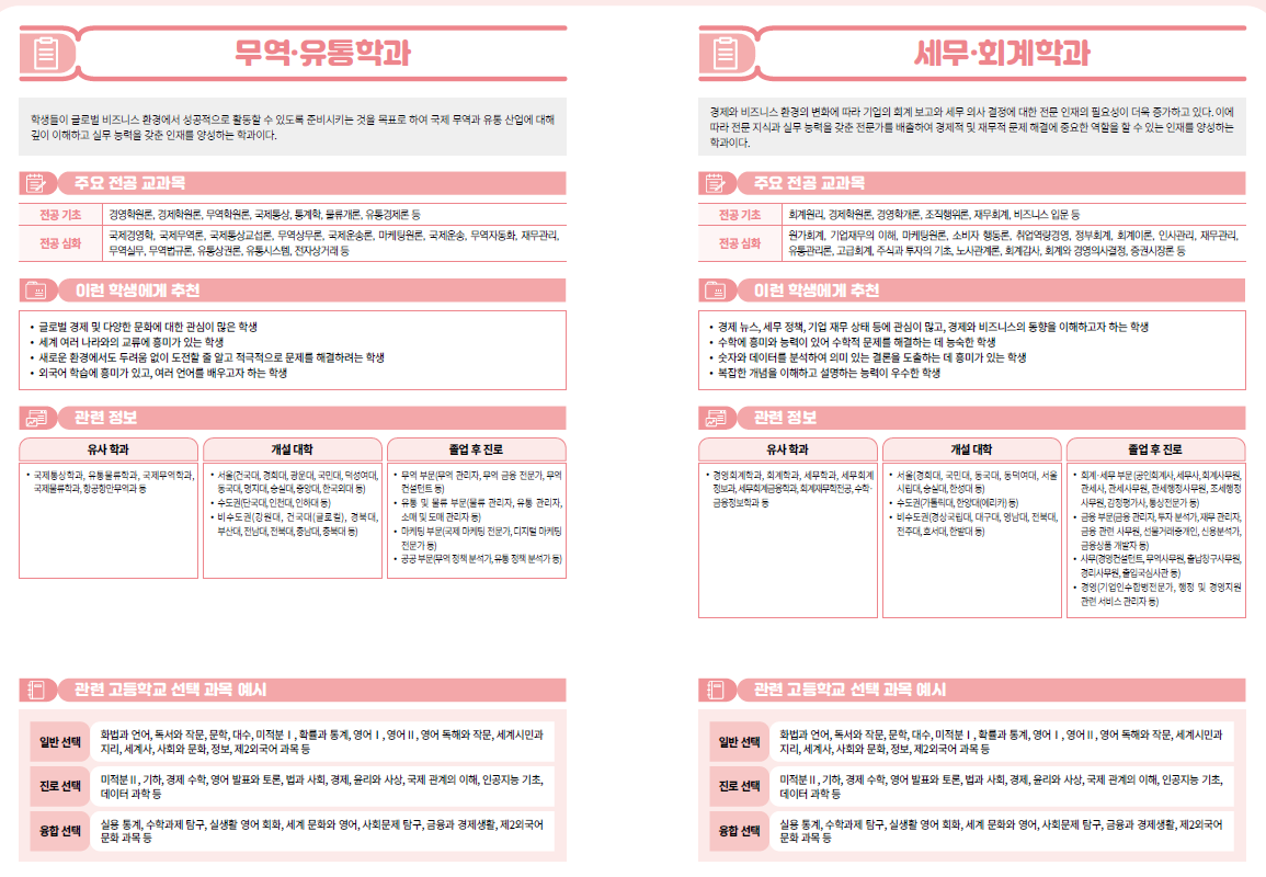2022개정 고등학교 선택과목 상경계열, 법· 행정계열-경영,경제,행정,금융보험,무역,유통,세무,회계,호텔관광경영,법학,보건행정
