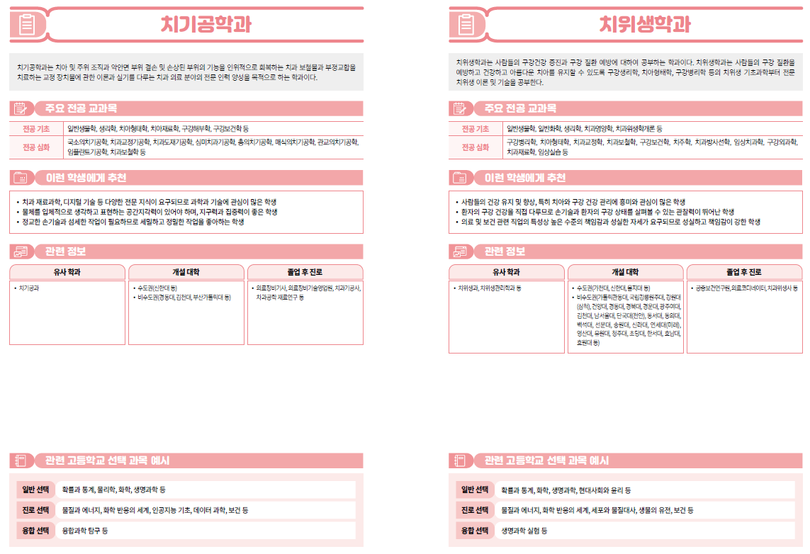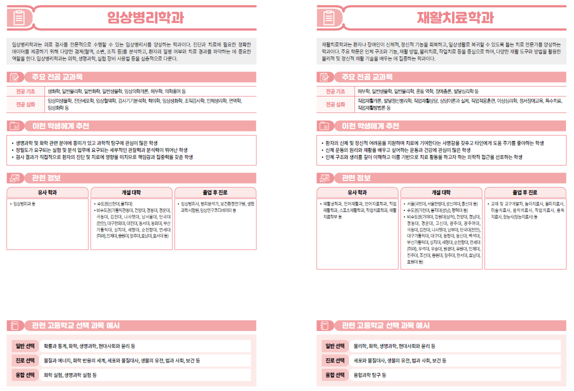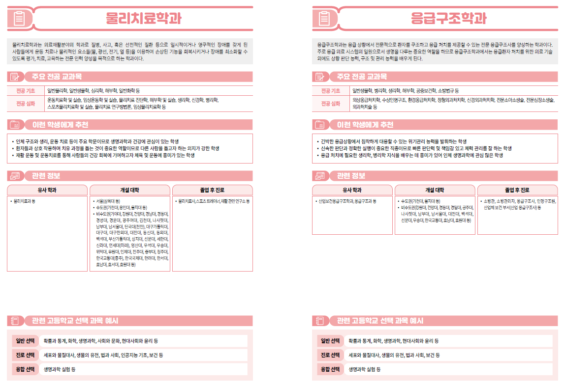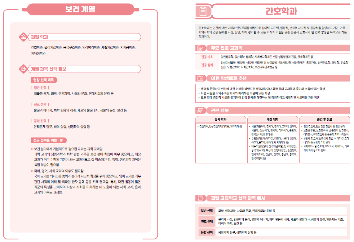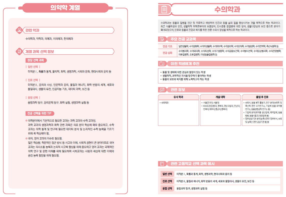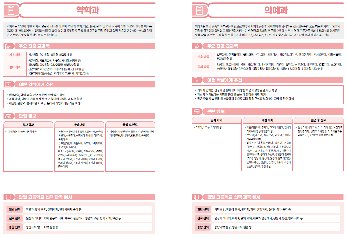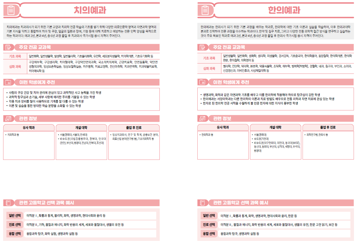 2022개정 고등학교 선택과목 의대,약대,보건계열-의대,치대,한의대,수의학,약학, 간호,물리치료,응급구조,임상병리,재활치료,치기공,치위생