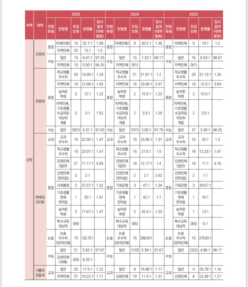 | 2025학년도 전국 대학교 대입 수시 및 정시 입시결과(커트라인)- 대교협 (0) | 2025.09.05 |