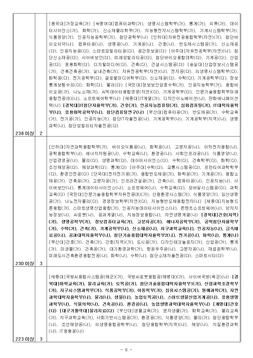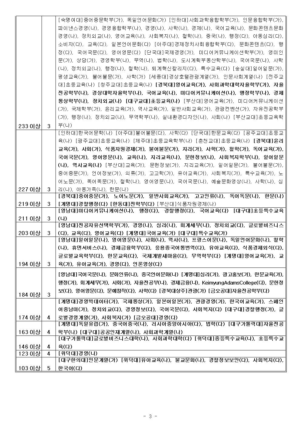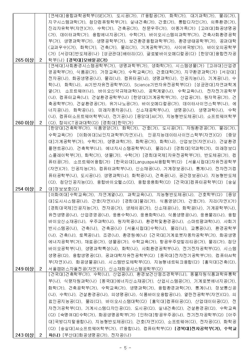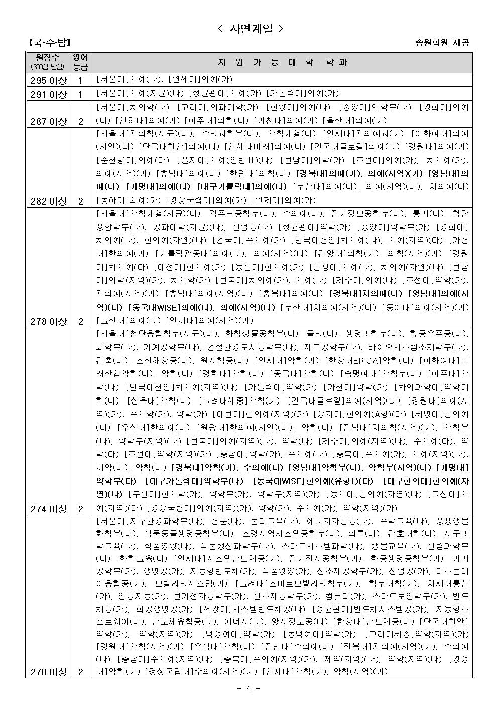지원가능점수-인문, 자연 (송원학원)