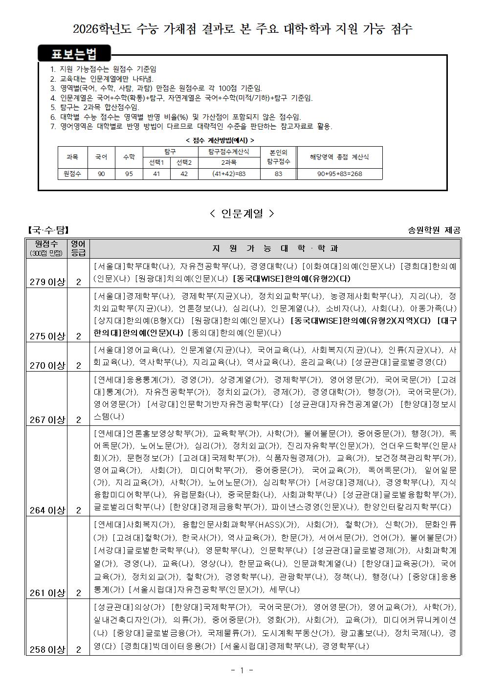 2026학년도 수능 가채점 결과로 본 주요 대학·학과