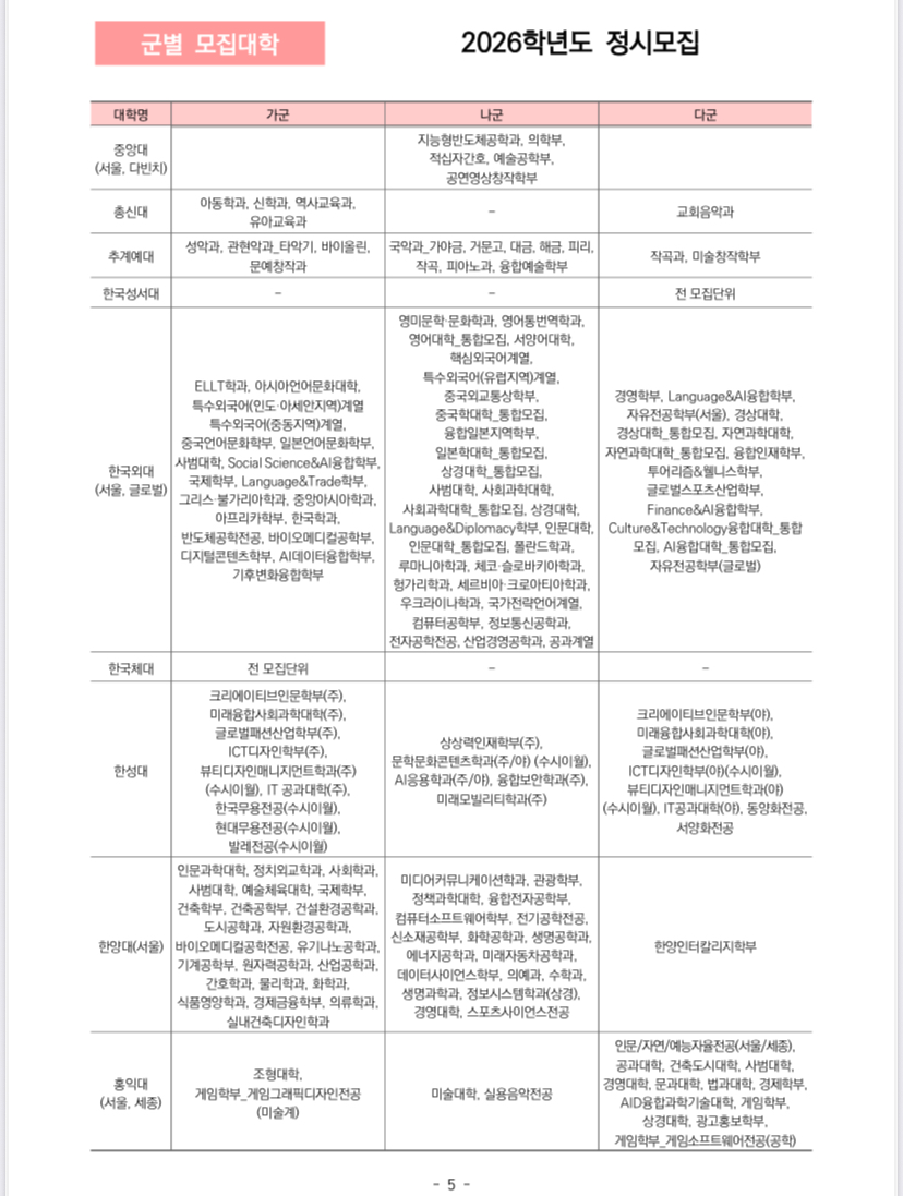 | (실채점) 2026학년도 정시모집 주요대학 지원가능점수(자연) (0) | 2025.12.06 |