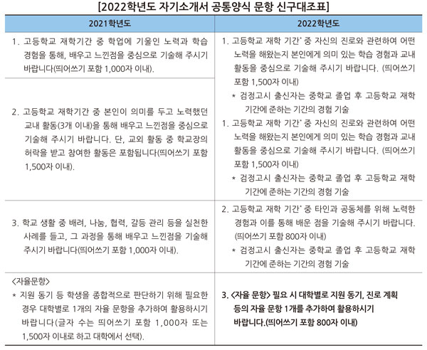 | 2022학년도 학종 자기소개서 폐지 대학 (0) | 2021.03.15 |