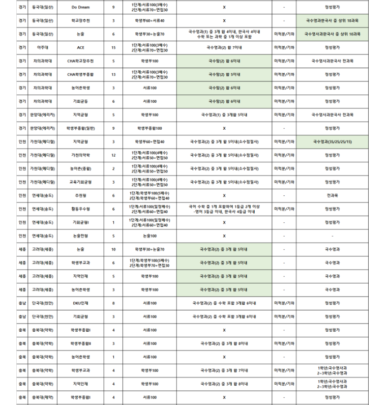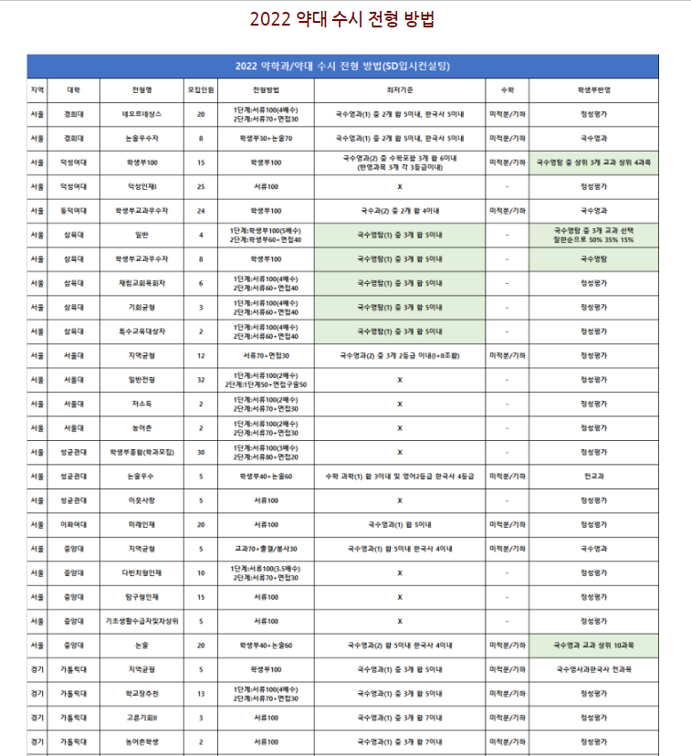 | 2022학년도 정시 수학 + 탐구영역 필수 반영 대학 (0) | 2021.03.23 |